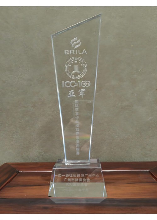 2021年10月,龙伟文律师在国际商事仲裁模拟仲裁庭训练赛中获得一带一路律师联盟广州中心、广州市律师协会以及ICC国际商会颁发的亚军奖杯。