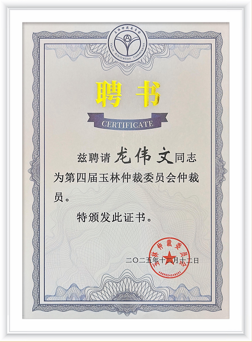 我所龙伟文主任律师获聘第四届玉林仲裁委员会仲裁员_事务所新闻_新闻中心_广东大润律师事务所(官网)___公司合规_工程法务_涉外法务_广东大润律师事务所
