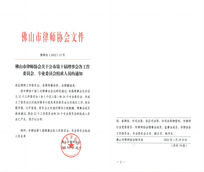 龙伟文律师经佛山市律师协会选任为涉外与港澳台法律专业委员会副主任