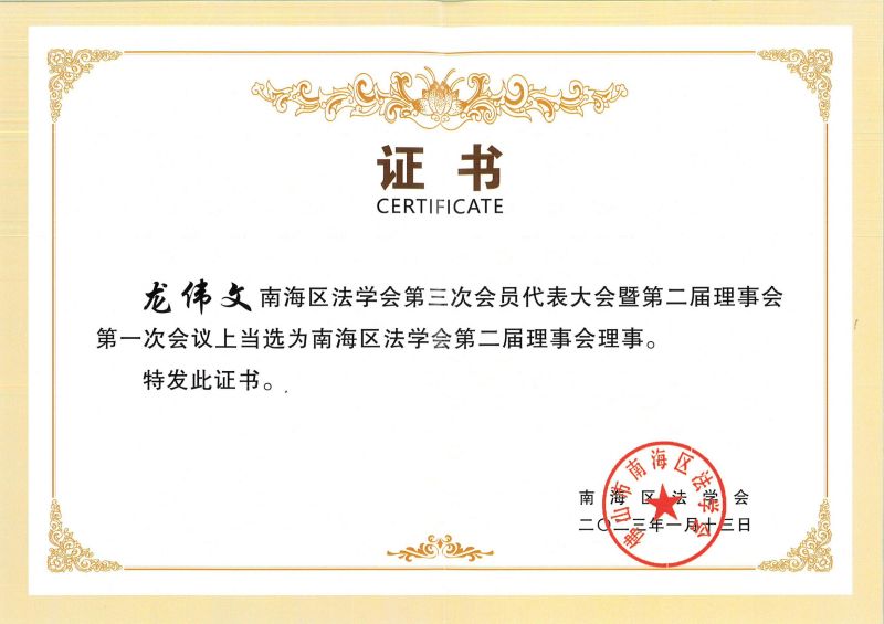 龙伟文律师当选南海法学会第二届理事会理事_事务所新闻_新闻中心_广东大润律师事务所(官网)___公司合规_工程法务_涉外法务_广东大润律师事务所